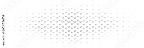 horizontal halftone of silver star spreading from center on white design for pattern and background.