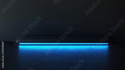 Horizontal light blue beam glowing subtly on black, minimalist design embodying sleek modern elegance