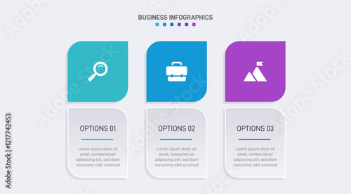 Horizontal progress bar featuring 3 arrow-shaped elements, symbolizing three six stages of business strategy and progression. Clean timeline infographic design template. Vector for presentation