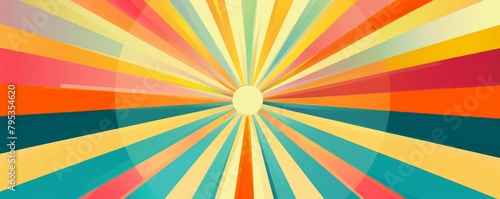 Horizontal retro groovy background with bright sunburst in style 60s, 70s. Trendy colorful graphic print.