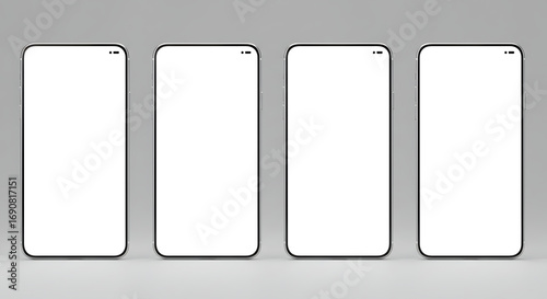 Horizontal shot of four blank smartphone mockups in a row