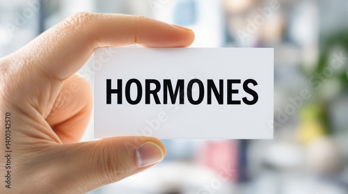 Hormones concept with hand holding white card