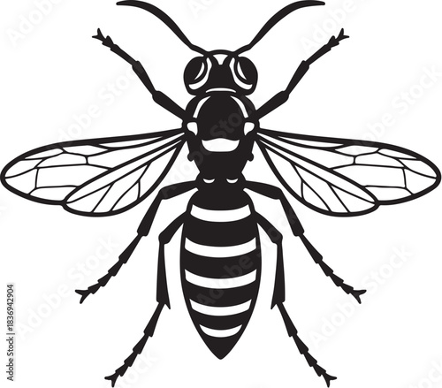 Hornet Dorsal View Powerful Vector Line Illustration.eps