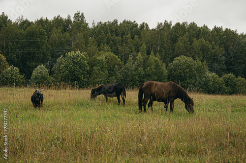 horse and foal in the field