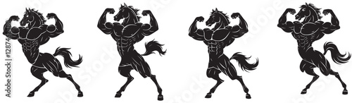 Horse bodybuilder silhouette vector, Muscular Stallion Flexing Silhouette Illustration