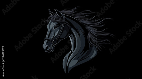 Horse head icon of black tribal animal. Wild mustang stallion or mare with curved neck and ornamental mane for tattoo, horse racing sport mascot or t-shirt print design