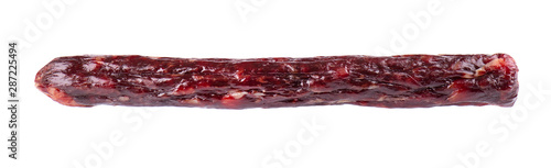 Horse sausage. Tasty dried sausage, close-up, isolated on white background.
