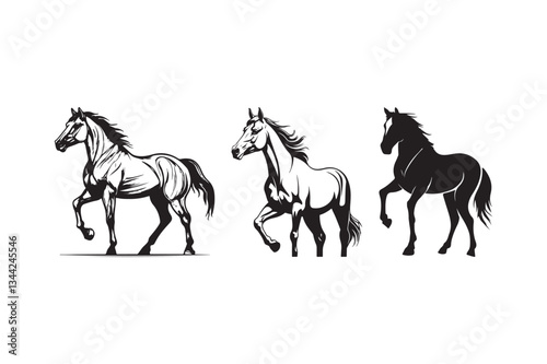 Horse Silhouette Vector Set Elegant Running Stallion Clipart for Design and Decor
