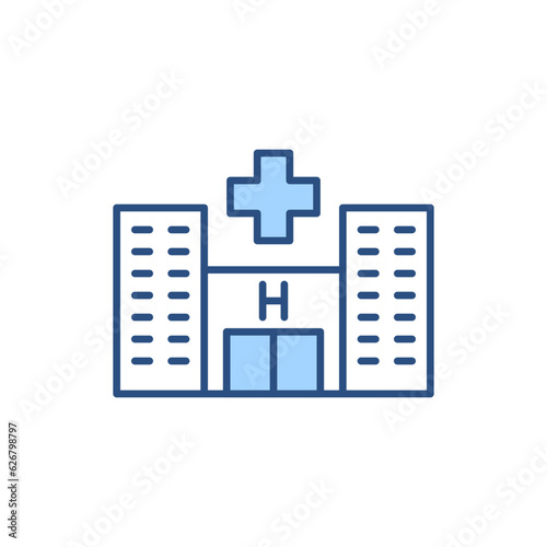 Hospital related vector line icon. Medical facility. Urgent care center. Hospital building. Primary care. Town clinic facade. Isolated on white background. Vector illustration. Editable stroke