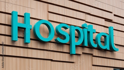 Hospital Sign on Modern Wooden Facade