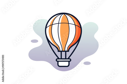 Hot Air Balloon Icon in Colorful Line Drawing - Isolated Artwork