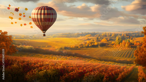 Hot Air Balloon Ride over Autumn Vineyard at Sunrise