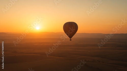 Hot air balloon sunrise landscape. Scenic view. Possible use Travel poster or postcard