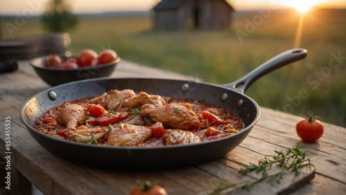 Hot barbecue chicken with spicy onion tomato sauce