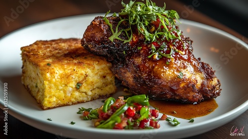 Hot Honey Chicken Crispy fried chicken drizzled with spicy honey glaze and served with cornbread