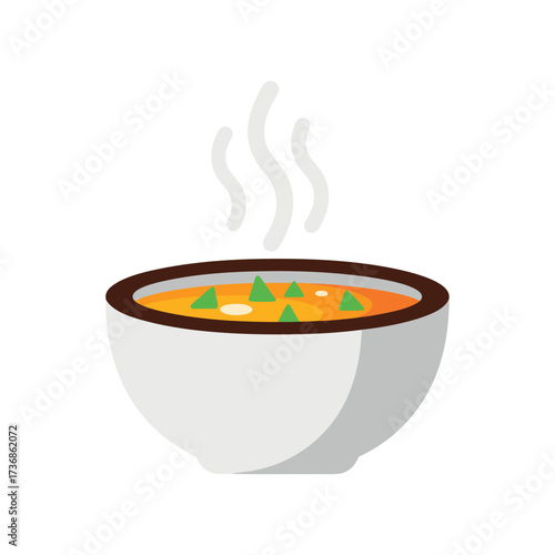 hot vegetable soup bowl with steam, representing healthy food and warm meal.