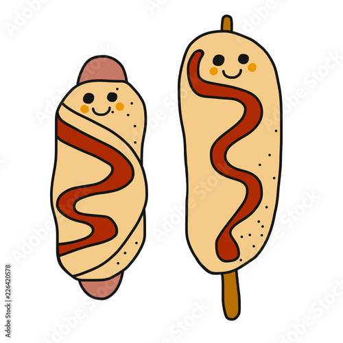 Hotdog cartoon vector illustration doodle style