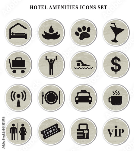 Hotel amenities wooden texture symbol