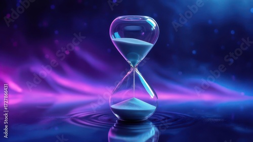 Hourglass in a cosmic setting, time flowing, concept of eternity.