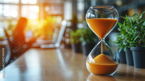 Hourglass on a Wooden Table in Office Setting