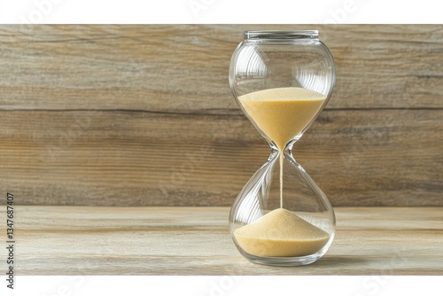 Hourglass on wood, time passing, background blurred, concept image