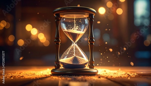 Hourglass on wooden table
