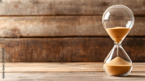Hourglass on Wooden Table.