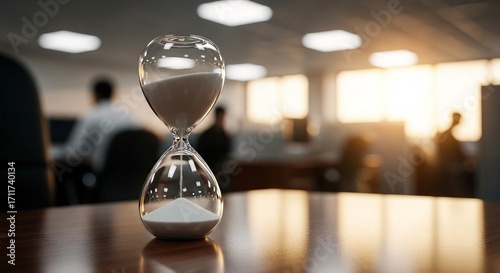 Hourglass Time Lapse Capturing Sand Flowing with Business Professionals Working in Office