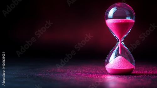 Hourglass with Pink Sand Flowing Measuring Time on Dark Background