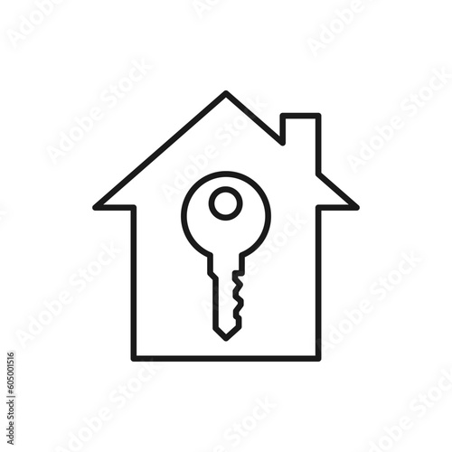 House and key line icon isolated on white background. Vector illustration