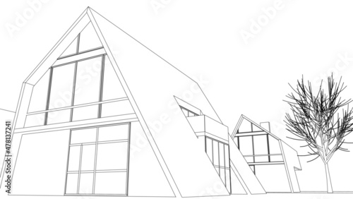 House architecture sketch vector 3d illustration