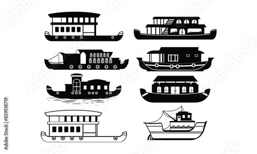 House boat Vector bundle, Clipart, Silhouette, Vector, icons, illustration, design.