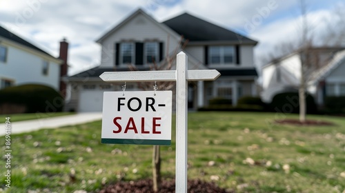 House for sale. A stunning real estate photograph of a suburban home with a "FOR-SALE" sign in the yard, indicating that the property has already been sold