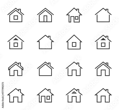 house, home, building, icon, outline, line art, architecture, dwelling, residence, property, real estate, symbol, graphic, design, element, black, white, isolated, set, collection, structure, roof, wi