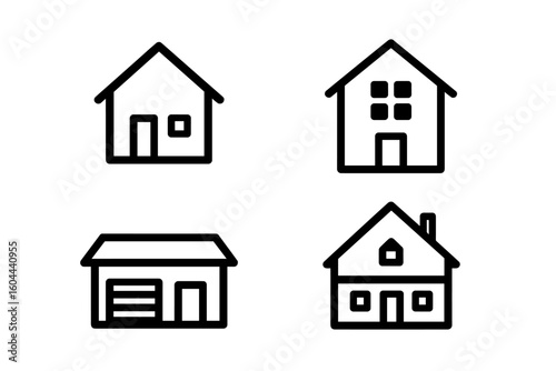 House icon set. Home vector symbols for real estate, architecture, and web design. Linear outline pictogram collection of residential buildings, property, and houses.