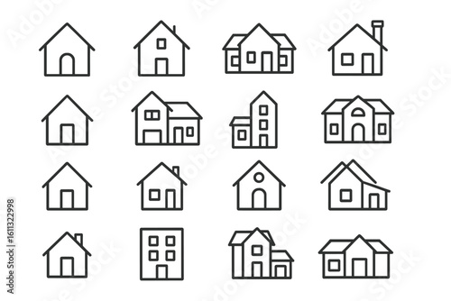 House icons set. Real estate building and home collection. Outline property symbols for web design. Architecture residential linear pictogram bundle. Vector graphic.
