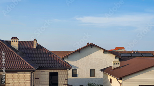 House in the background of nature. Blue sky. Summer landscape.