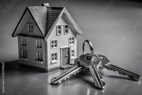 House Keys and Miniature House Model for Real Estate Concept. generative AI