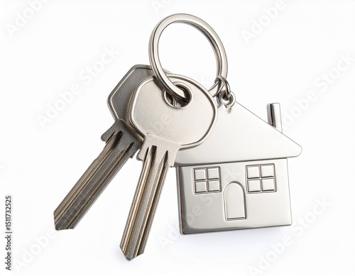 House keys with house shaped keychain, isolated white background