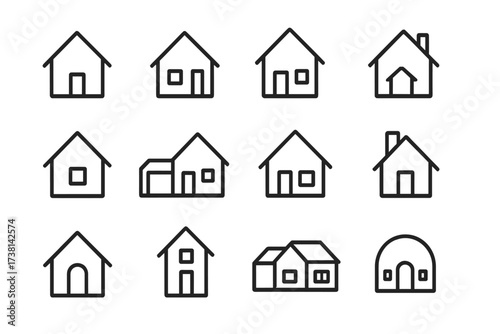House line icon set. Collection of home and building pictograms. Real estate, property graphic symbols for web, mobile app, UI UX design. Minimalist vector with editable stroke.