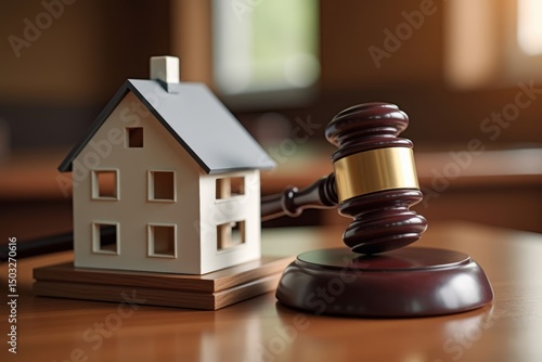 House Model and Gavel: Legal Proceedings in Real Estate Court