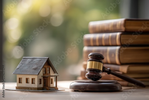 House model with gavel and books