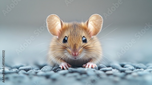 House mouse face and ears House mouse laying down on a grey background : Generative AI