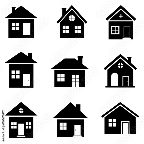 House silhouette icons set isolated on transparent background