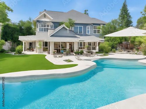 House with a pool in the backyard Luxury sunset backyard Swimming pool.