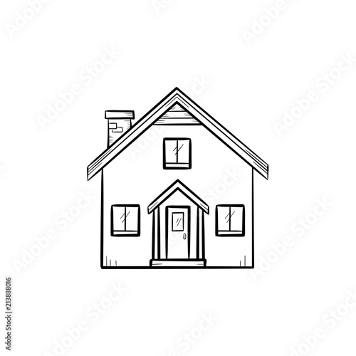 House with door and window hand drawn outline doodle icon