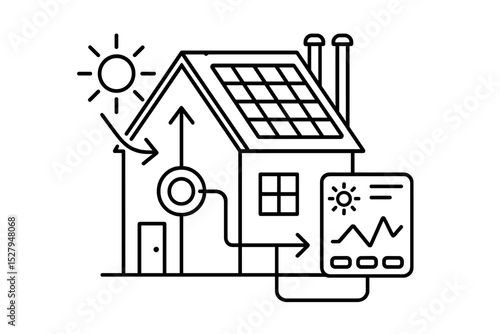 House with solar panels and energy usage graph icon vector illustration