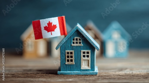 House with the flag of Canada. Immigration to Canada. Buying real estate. Houses for rent in Ottawa. Property price. Acquisition of real estate in another state.