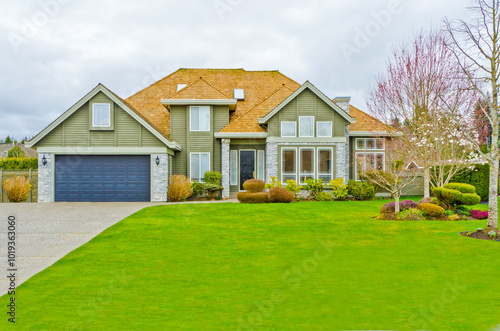Houses in suburb at Summer in the north America. Luxury houses with nice landscape.