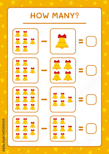 How many christmas bell, game for children. Vector illustration, printable worksheet